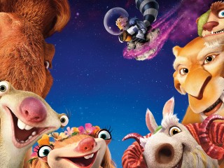 Ледниковый период, мультфильм, Мэнни, Сид, Диего, Элли, Крэш, Эдди, астероид, снег, ленивец, белка, космос, жолудь - 320x240