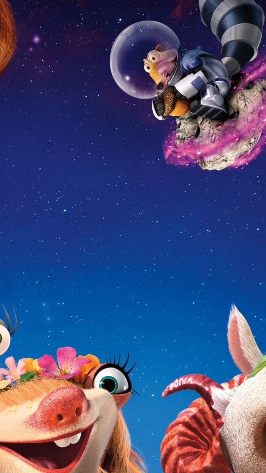 Ледниковый период, мультфильм, Мэнни, Сид, Диего, Элли, Крэш, Эдди, астероид, снег, ленивец, белка, космос, жолудь - 540x960