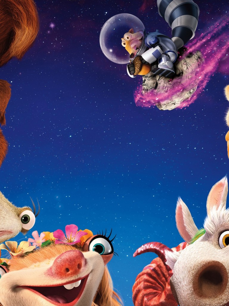 Ледниковый период, мультфильм, Мэнни, Сид, Диего, Элли, Крэш, Эдди, астероид, снег, ленивец, белка, космос, жолудь - Non-retina iPad