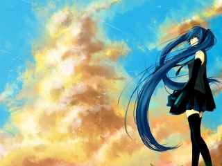 Аниме фото девушки на фоне голубого неба обои hd - 320x240