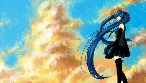 Аниме фото девушки на фоне голубого неба обои hd - 480x272 PSP