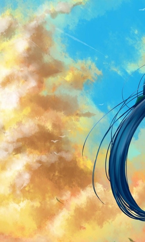 Аниме фото девушки на фоне голубого неба обои hd - 480x800
