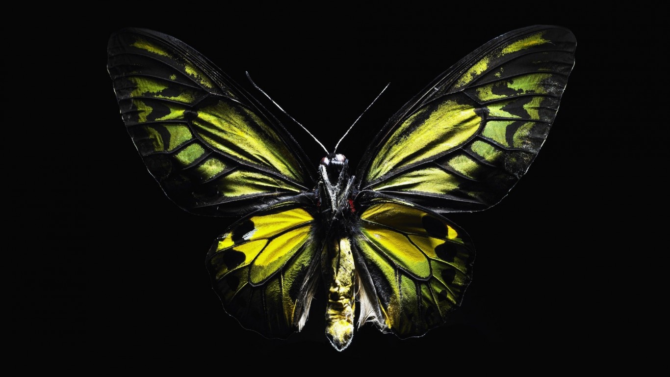 Бабочка на черном фоне - 1366x768