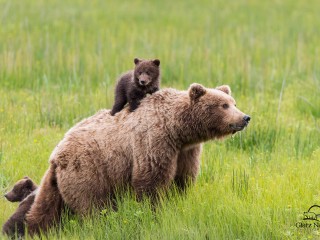Бурый медведь и медвежата на рабочий стол - 320x240