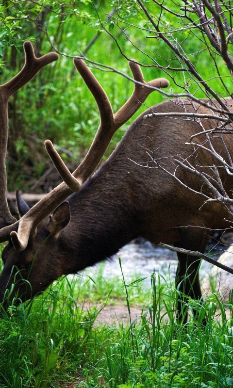 Взрослый олень в лесу - 480x800