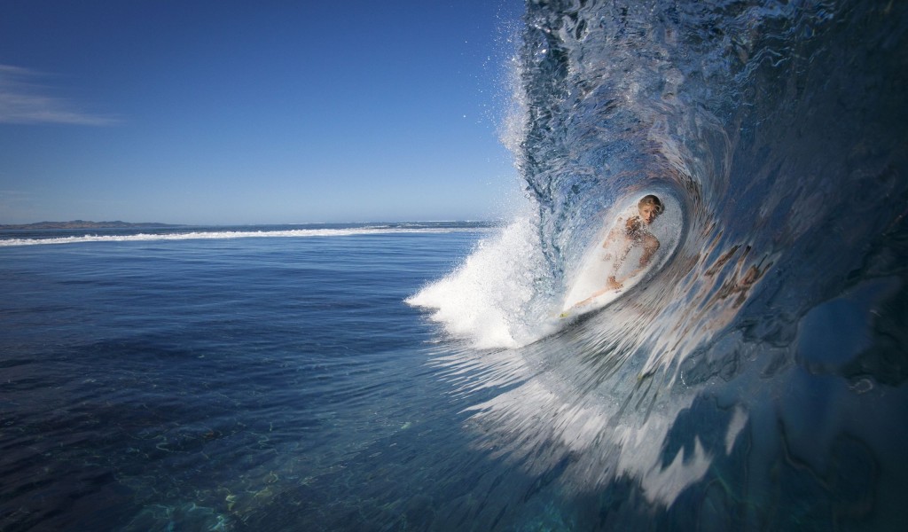 Девушка на серфинге в волне - 1024x600