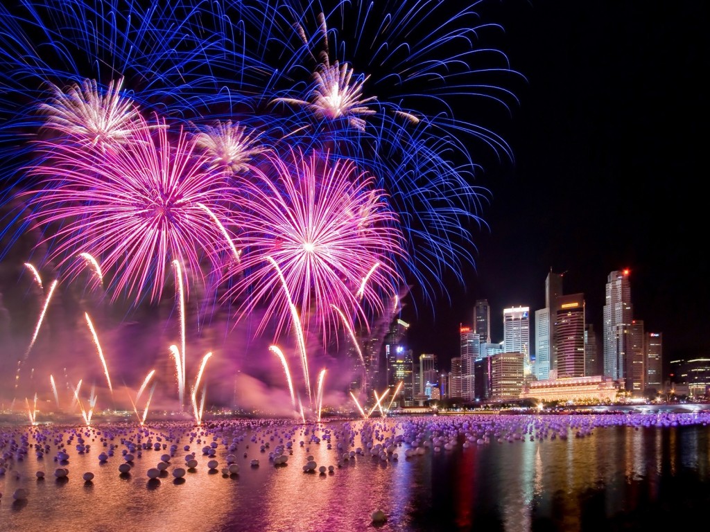 Дорогой феерверк над городом - 1024x768