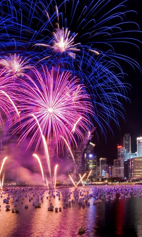 Дорогой феерверк над городом - 480x800