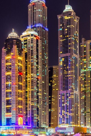 Дубай, город, небоскребы, здания, ночь, огни, красочный, яркий, городской пейзаж HD обои - Older iPhone & iPod