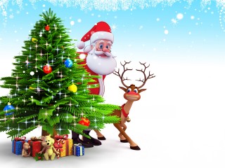 Елка, картинки, Санта-Клаус, фоны, Новый год, олененок, обои, рождество, настроение - 320x240