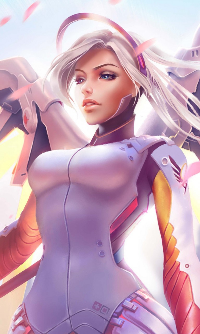 История героев, Overwatch, Ангел, Mercy, крылья, небо, 4K, Ultra HD, 3840x2160 обои - 768x1280