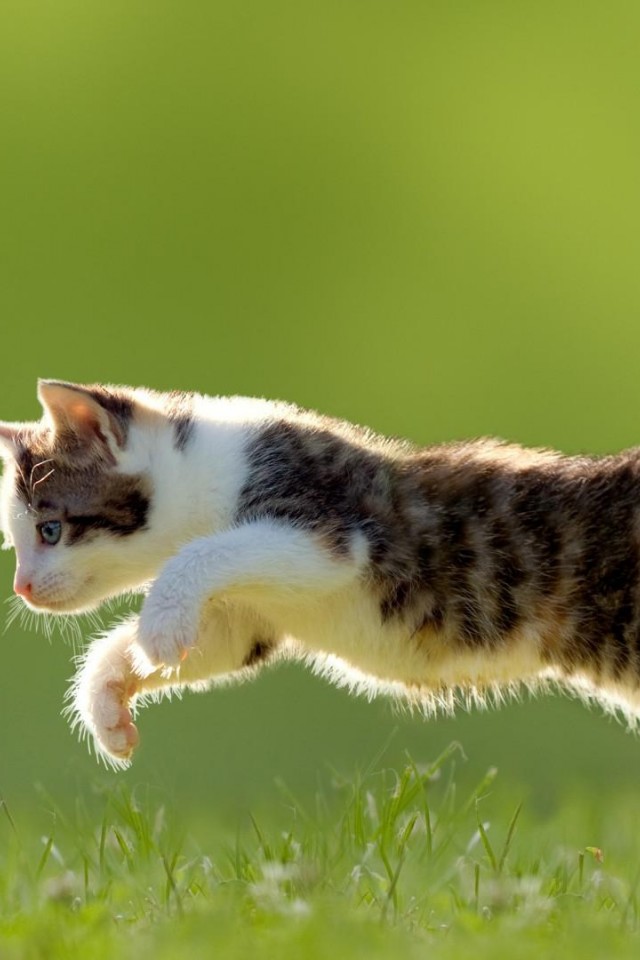 Котенок, трава, прыгать, милые животные, фоны, заставки - iPhone 4/4S/iPod