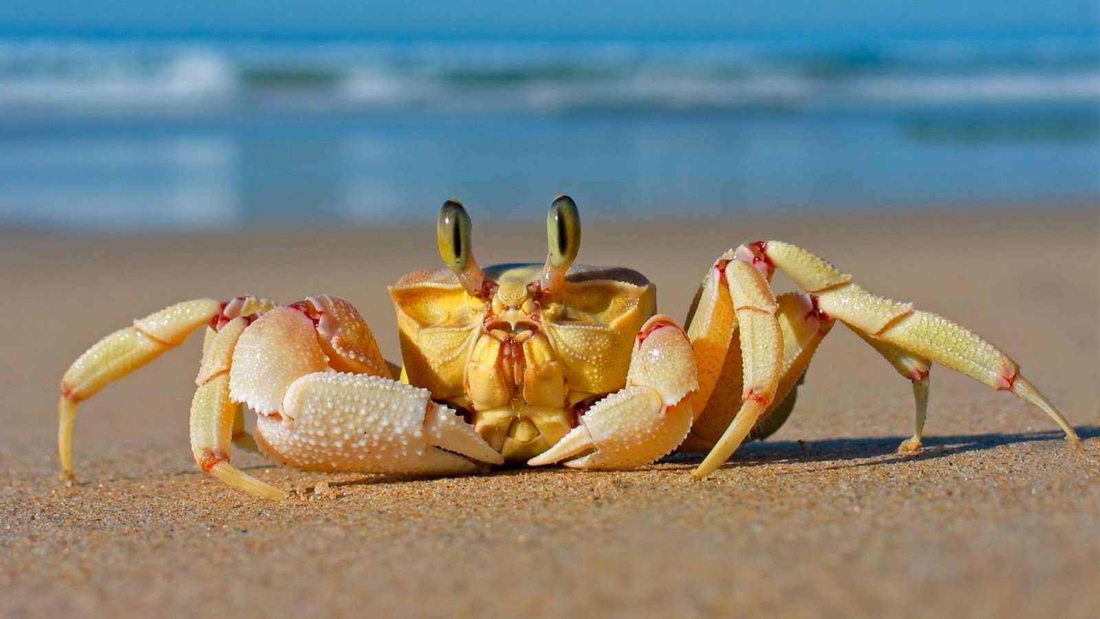 Краб на пляже макро картинки для рабочего стола скачать - 1600x900