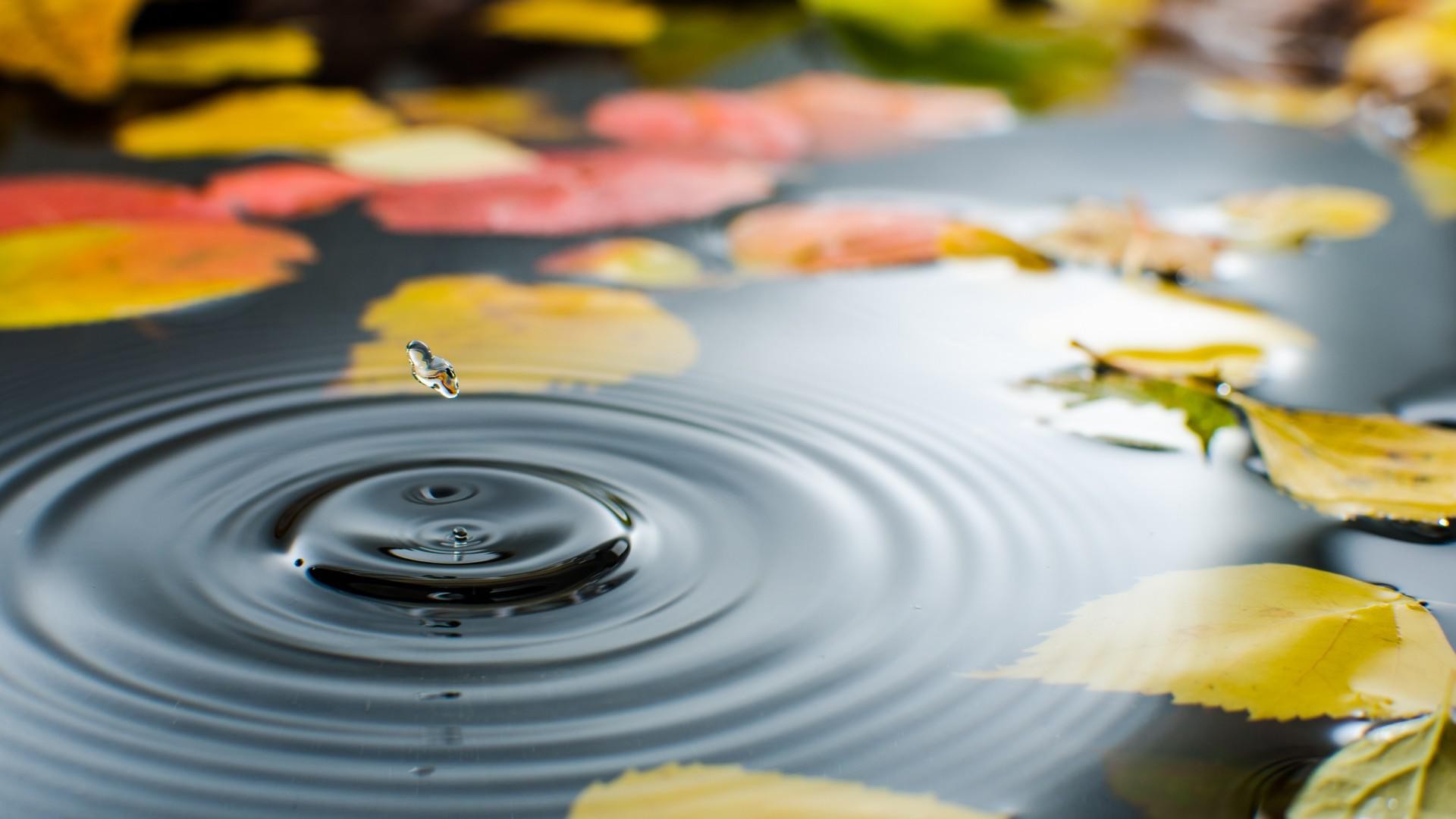 Красивая осень, природа, вода, дождь, листва, фоны, заставки - 1920x1080 (1080p)