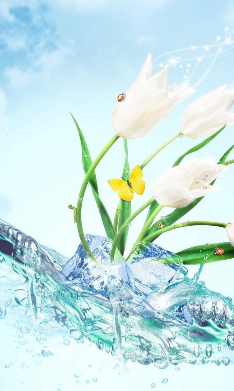 Красивые тюльпаны белого цвета в воде - 768x1280