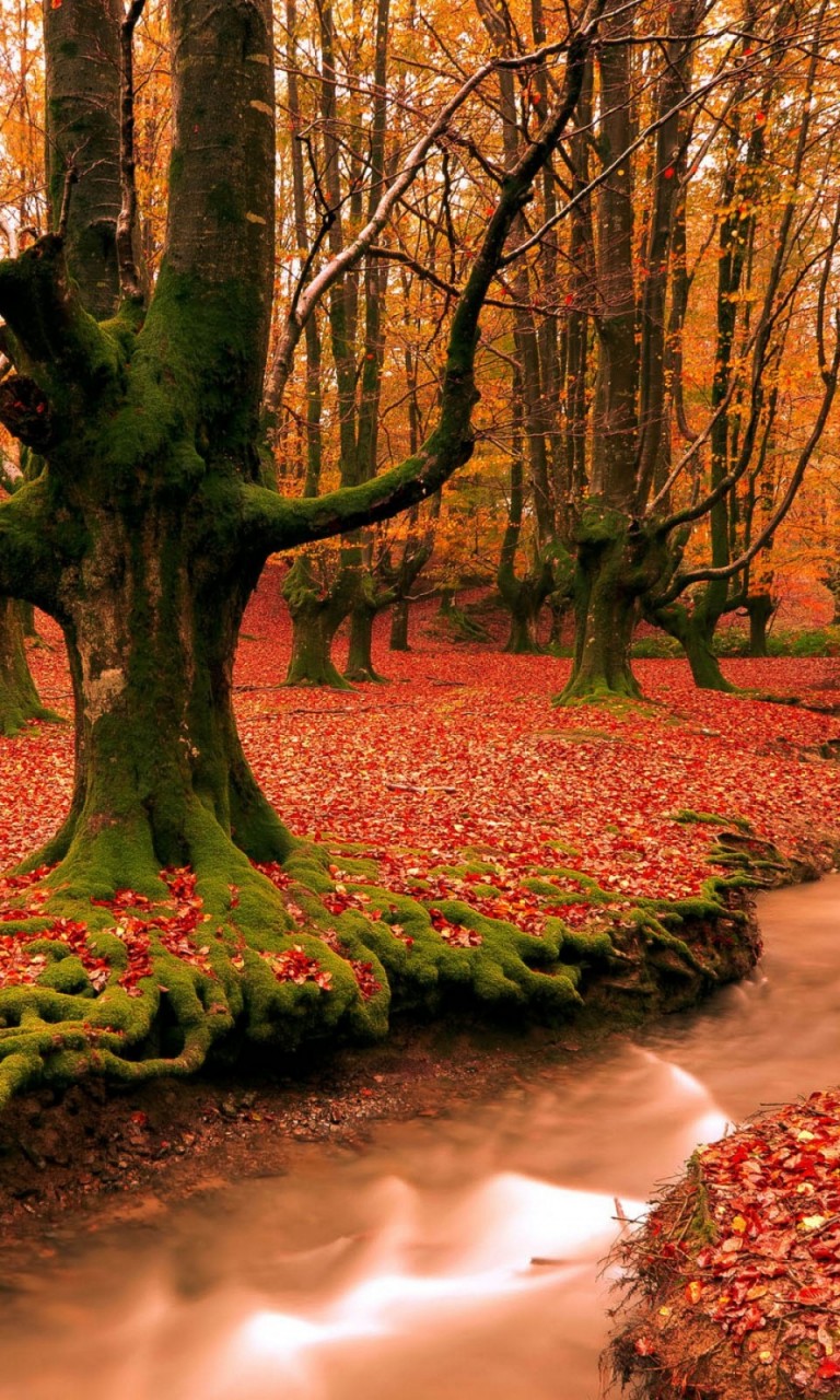 Красный лесные деревья картинки для рабочего стола скачать - 768x1280