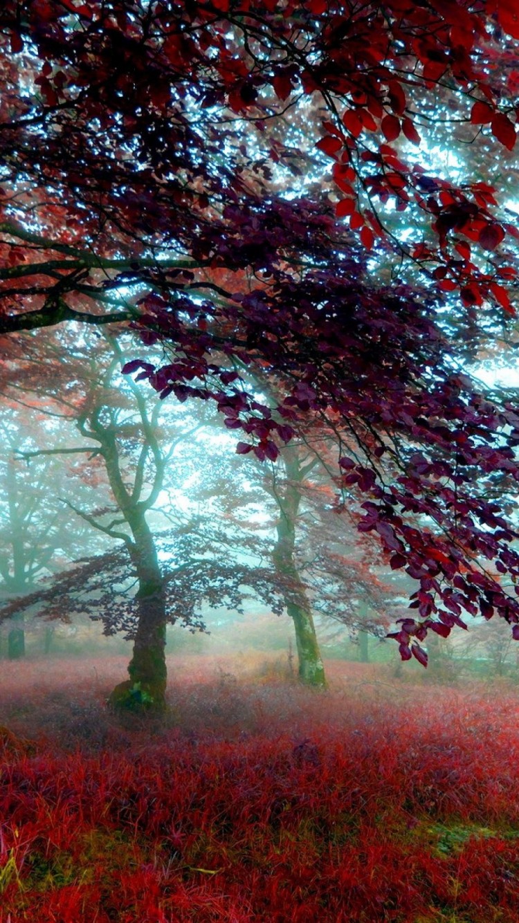 Красный эффект осенний лес картинки для рабочего стола скачать - iPhone 6