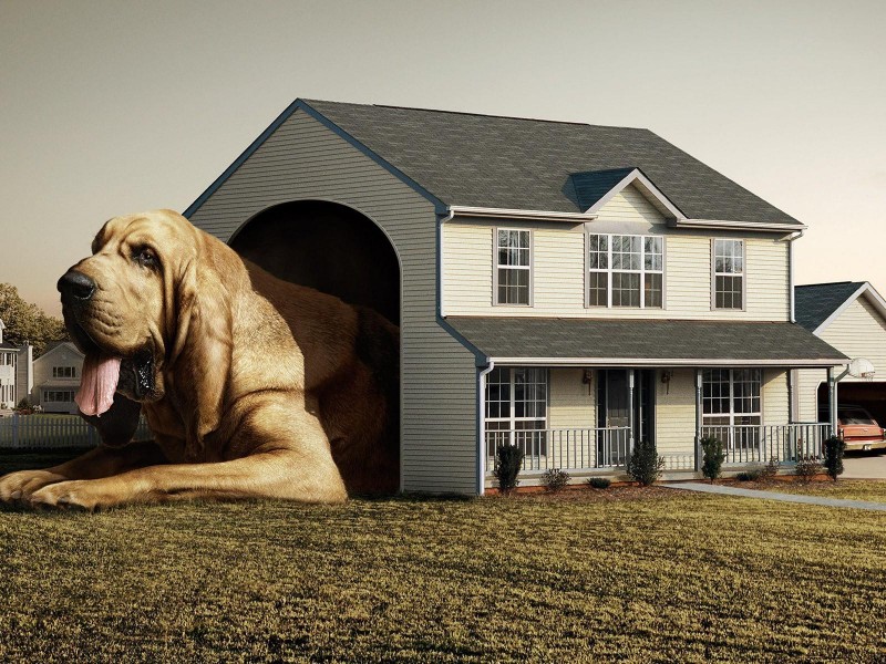 Креативные обои собака в доме - 800x600