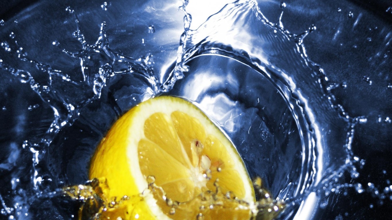 Кусок лимона падает в воду, абстрактные картинки - 1366x768