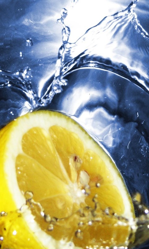 Кусок лимона падает в воду, абстрактные картинки - 480x800