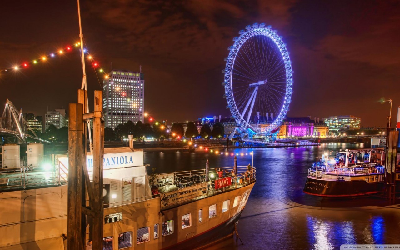 Лондон и колесо обозрения - 1280x800