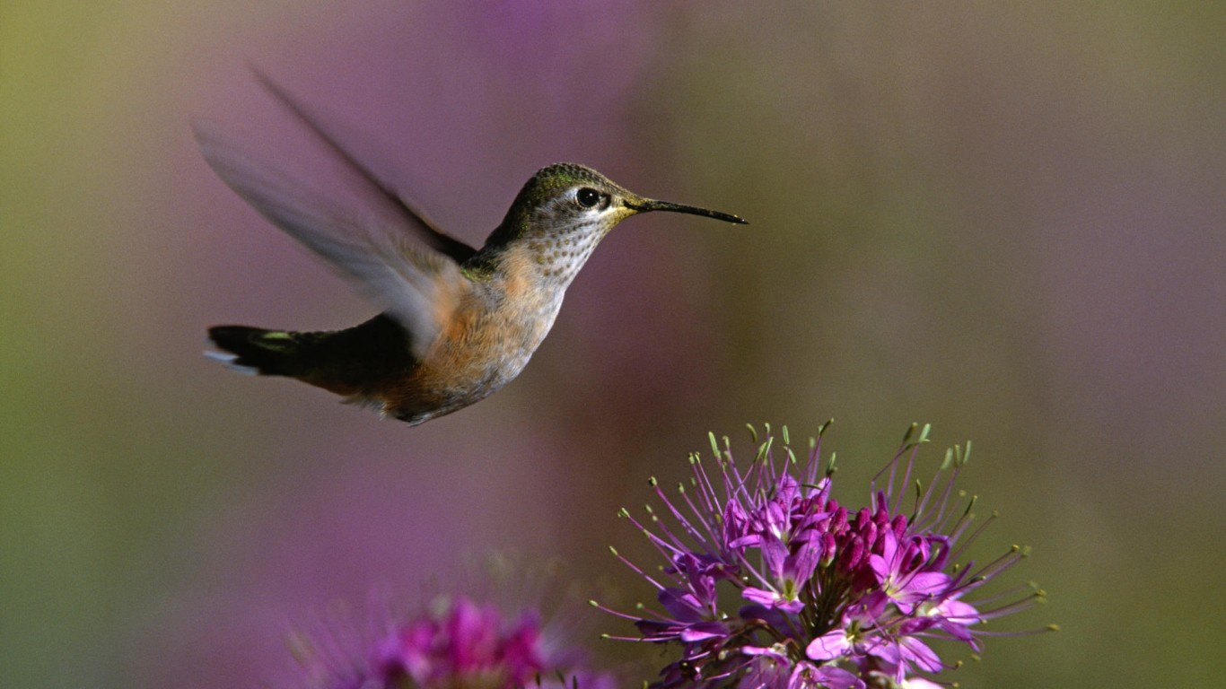 Макро снимок летящей колибри - 1366x768