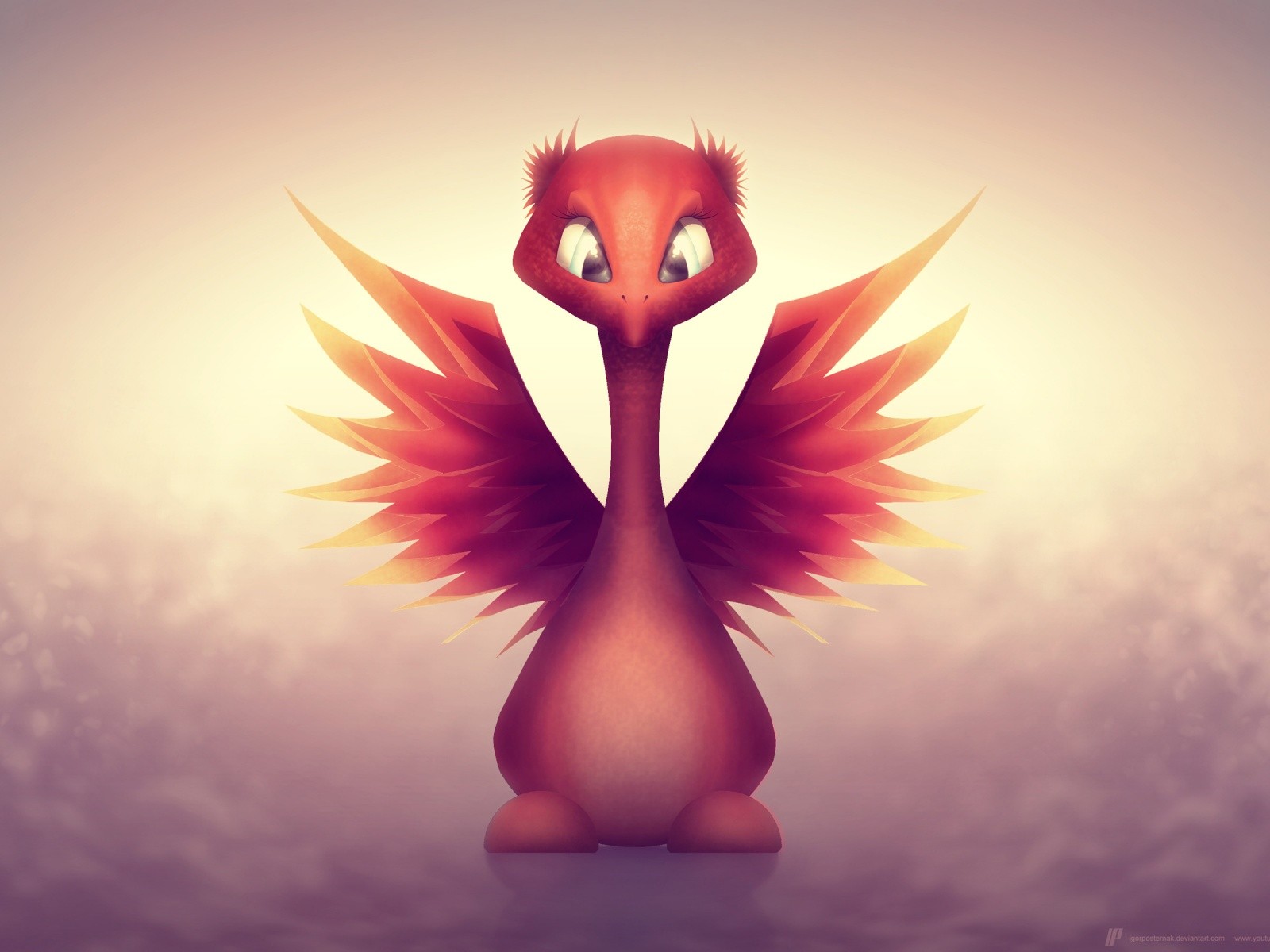 Маленькая птичка, огненная птица, крылья, глаза, милашка обои - 1600x1200