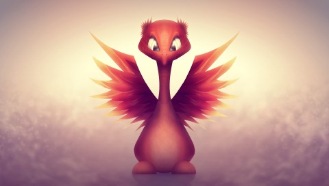 Маленькая птичка, огненная птица, крылья, глаза, милашка обои - 480x272 PSP