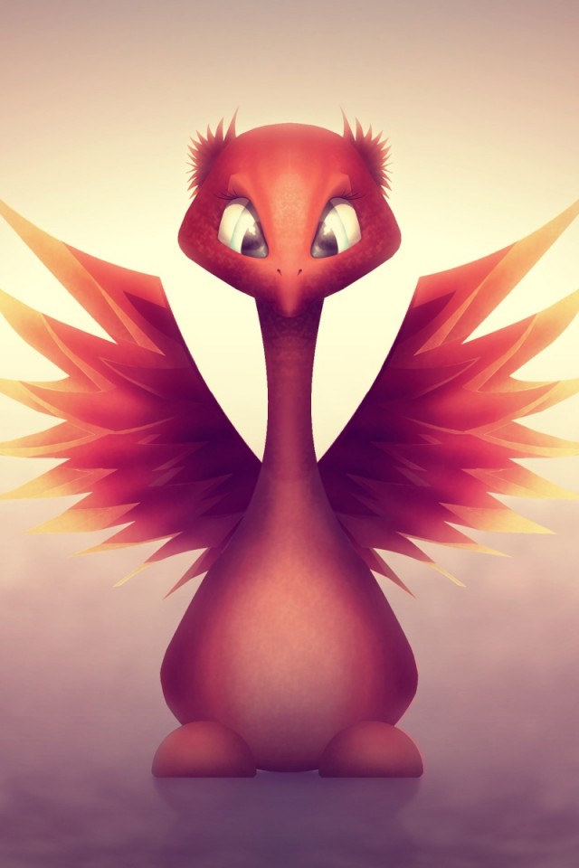 Маленькая птичка, огненная птица, крылья, глаза, милашка обои - iPhone 4/4S/iPod
