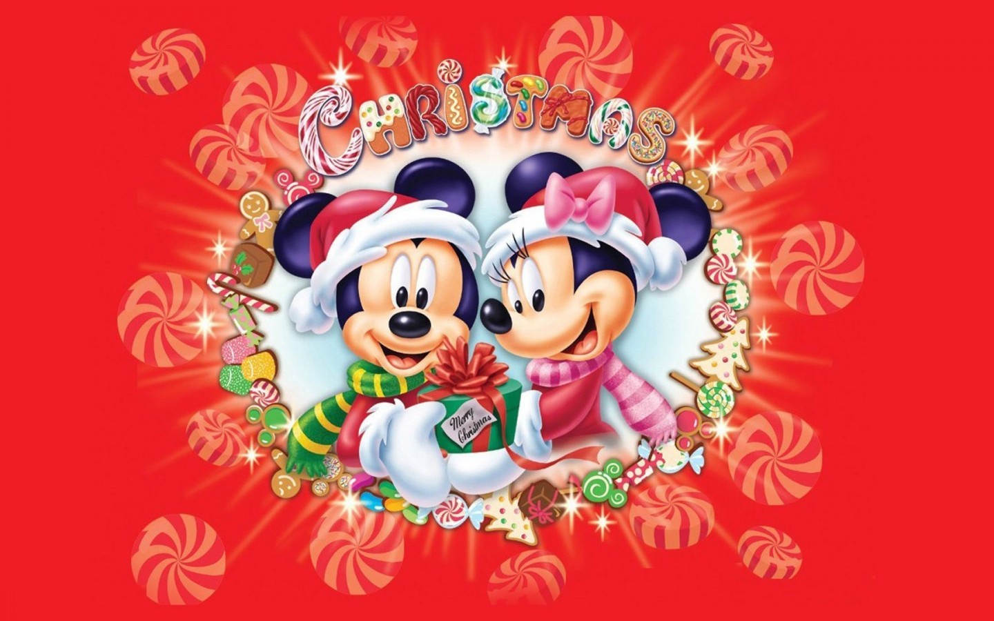 Микки Маус и его подруга Минни Маус Счастливого рождества и Нового года обои - 1440x900
