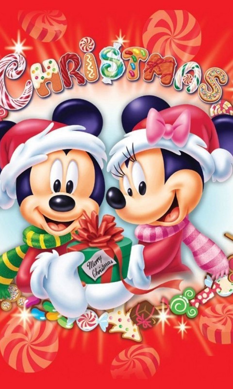 Микки Маус и его подруга Минни Маус Счастливого рождества и Нового года обои - 480x800