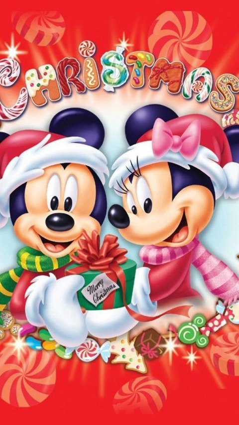 Микки Маус и его подруга Минни Маус Счастливого рождества и Нового года обои - 480x854
