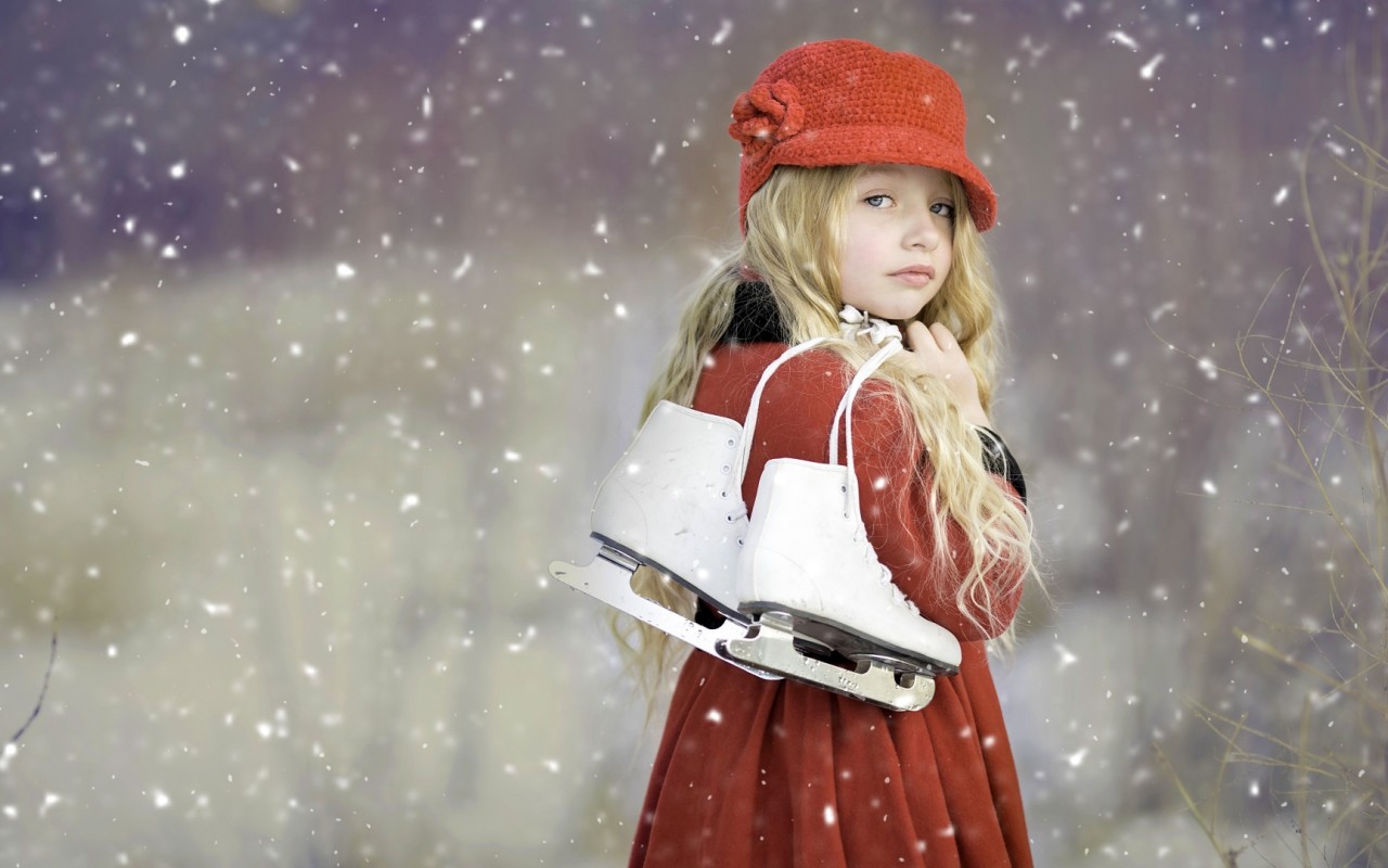 Милая девочка с коньками на снежном фоне обои hd - 1280x800