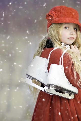 Милая девочка с коньками на снежном фоне обои hd - Older iPhone & iPod