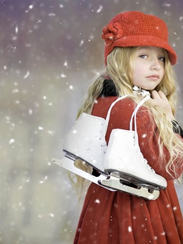 Милая девочка с коньками на снежном фоне обои hd - 360x480