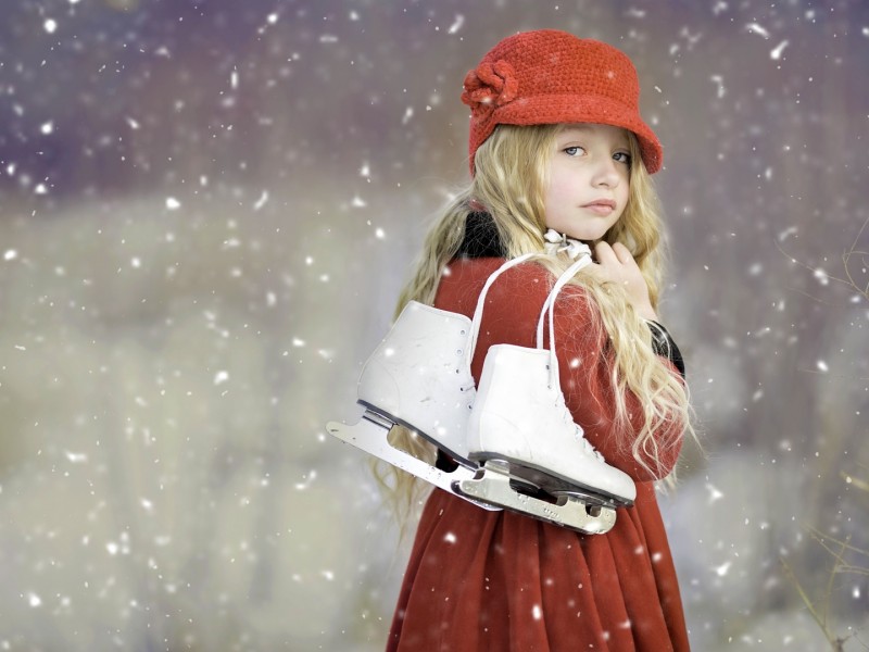 Милая девочка с коньками на снежном фоне обои hd - 800x600