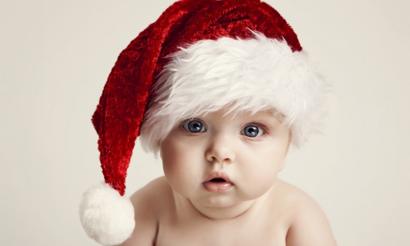 Милый ребенок в шляпе Санта HD - 800x480