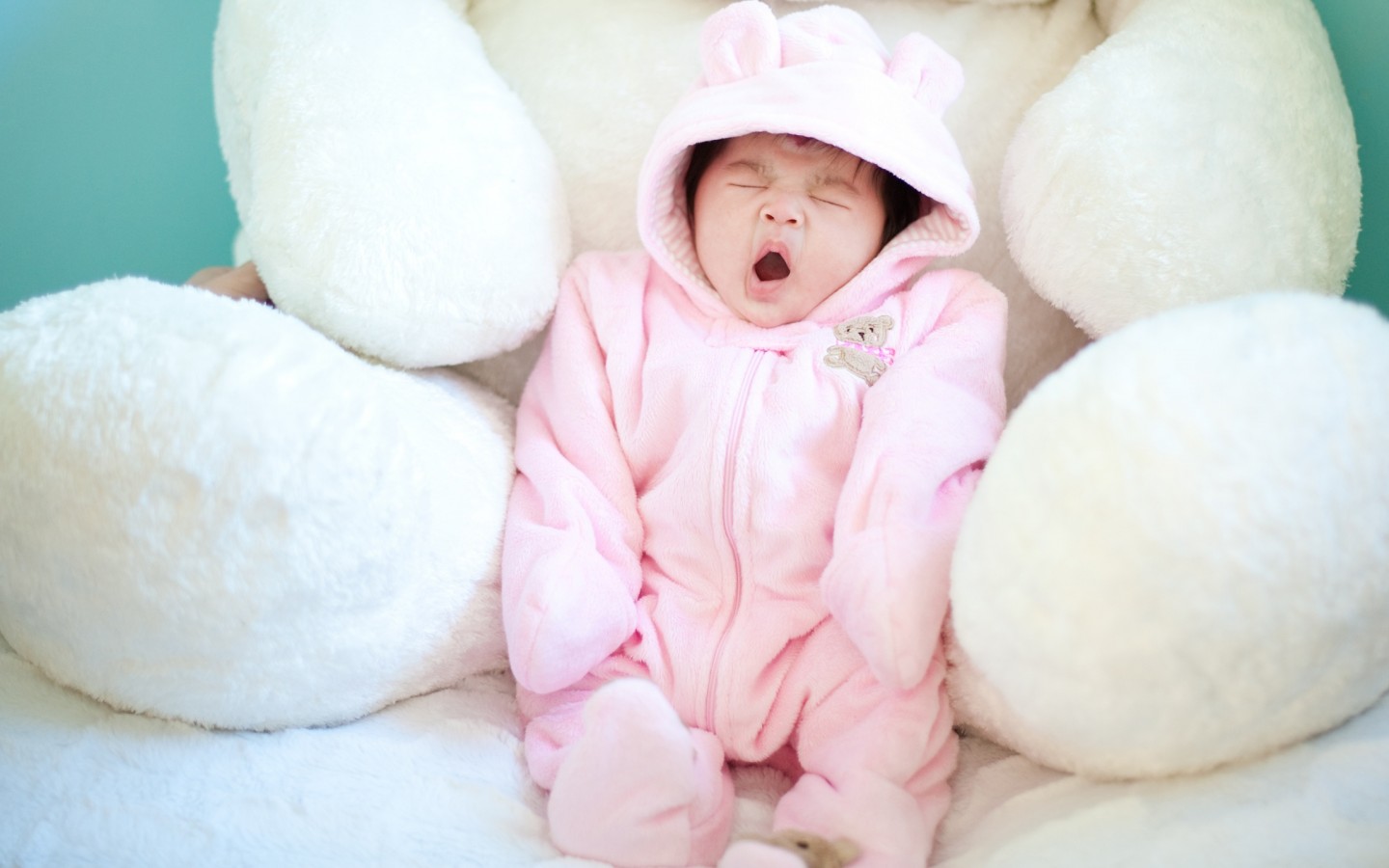 Настроения, дети, ребенок, младенец, зевает, форма, розовый, мишка, игрушка. белый. плюшевый, мягкий, фон, обои - 1440x900