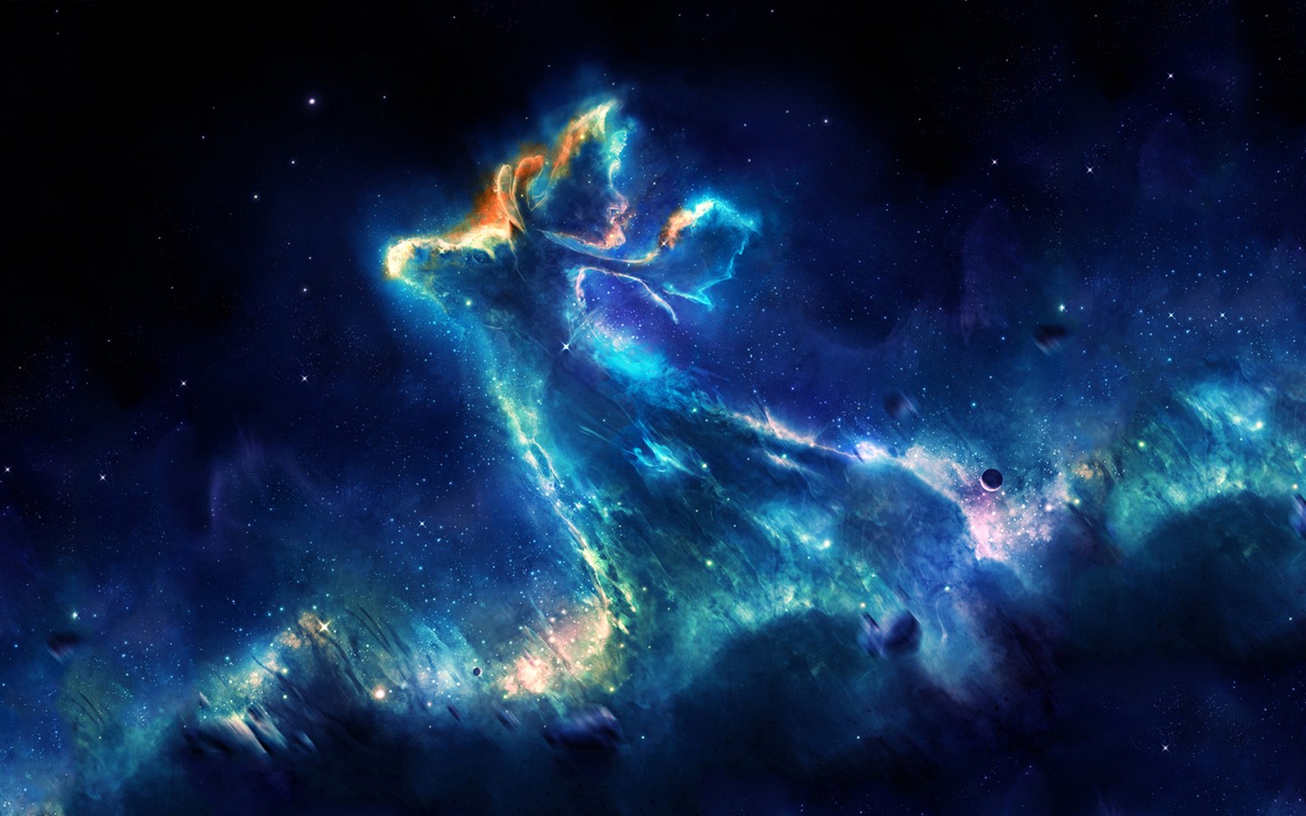 Небула, сияние, космос, человек, музыка, звезды - 1440x900