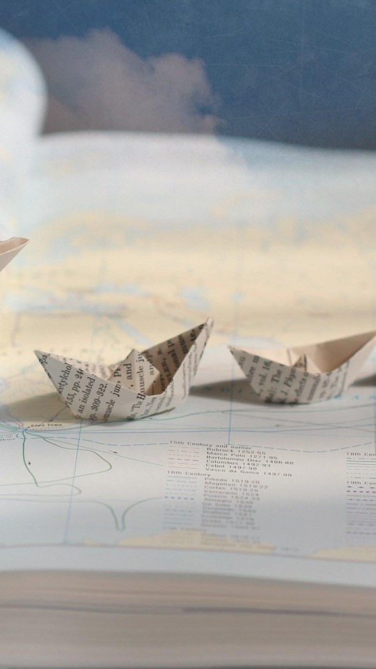 Оригами лодочки на карте мира обои hd - 540x960