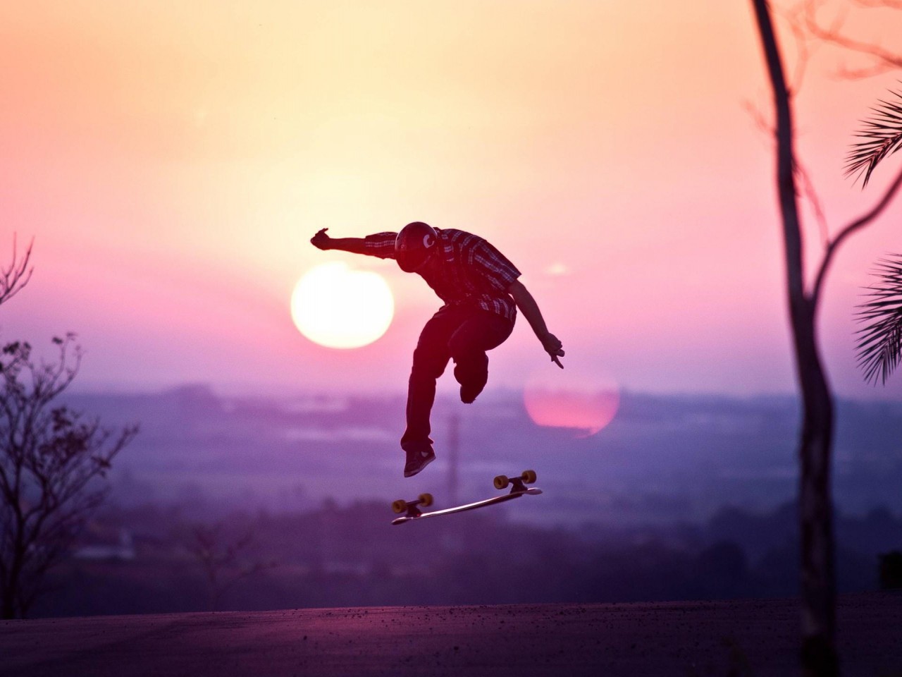 Парень скейтбордист на фоне солнца обои hd - 1280x960