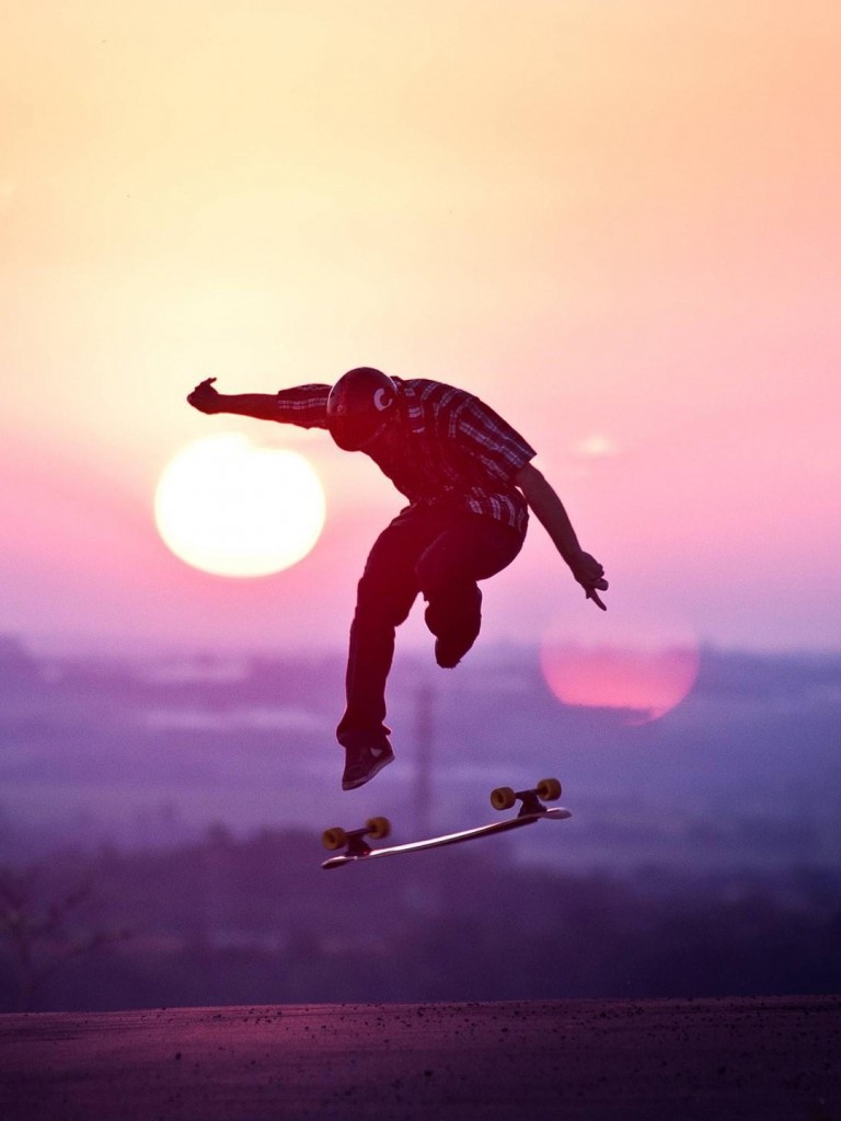 Парень скейтбордист на фоне солнца обои hd - Non-retina iPad