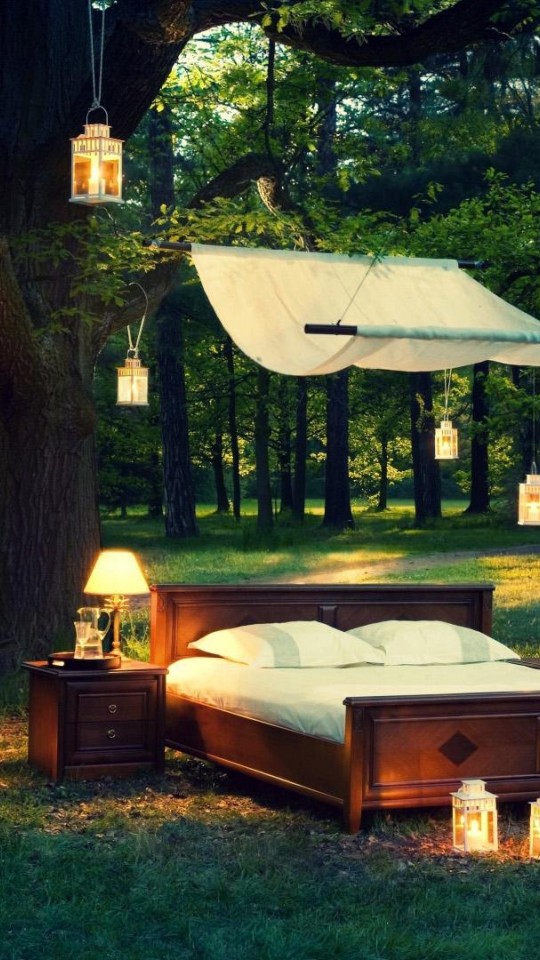 Перемещение кровати, комната, шкаф, настольные лампы, люстры, природа, лес - 540x960