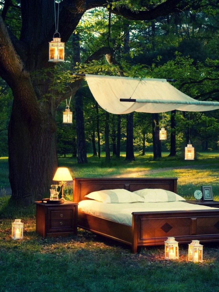 Перемещение кровати, комната, шкаф, настольные лампы, люстры, природа, лес - Non-retina iPad