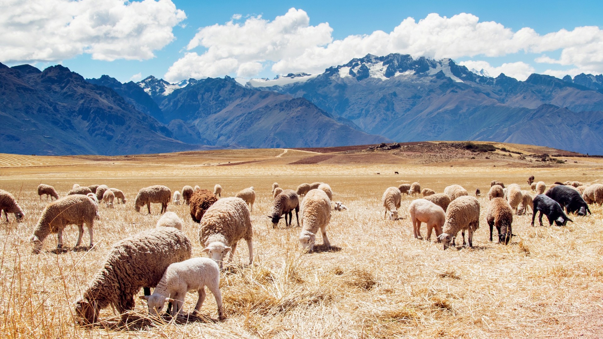 Перу, овцы, поля, горы, небо - 1920x1080 (1080p)