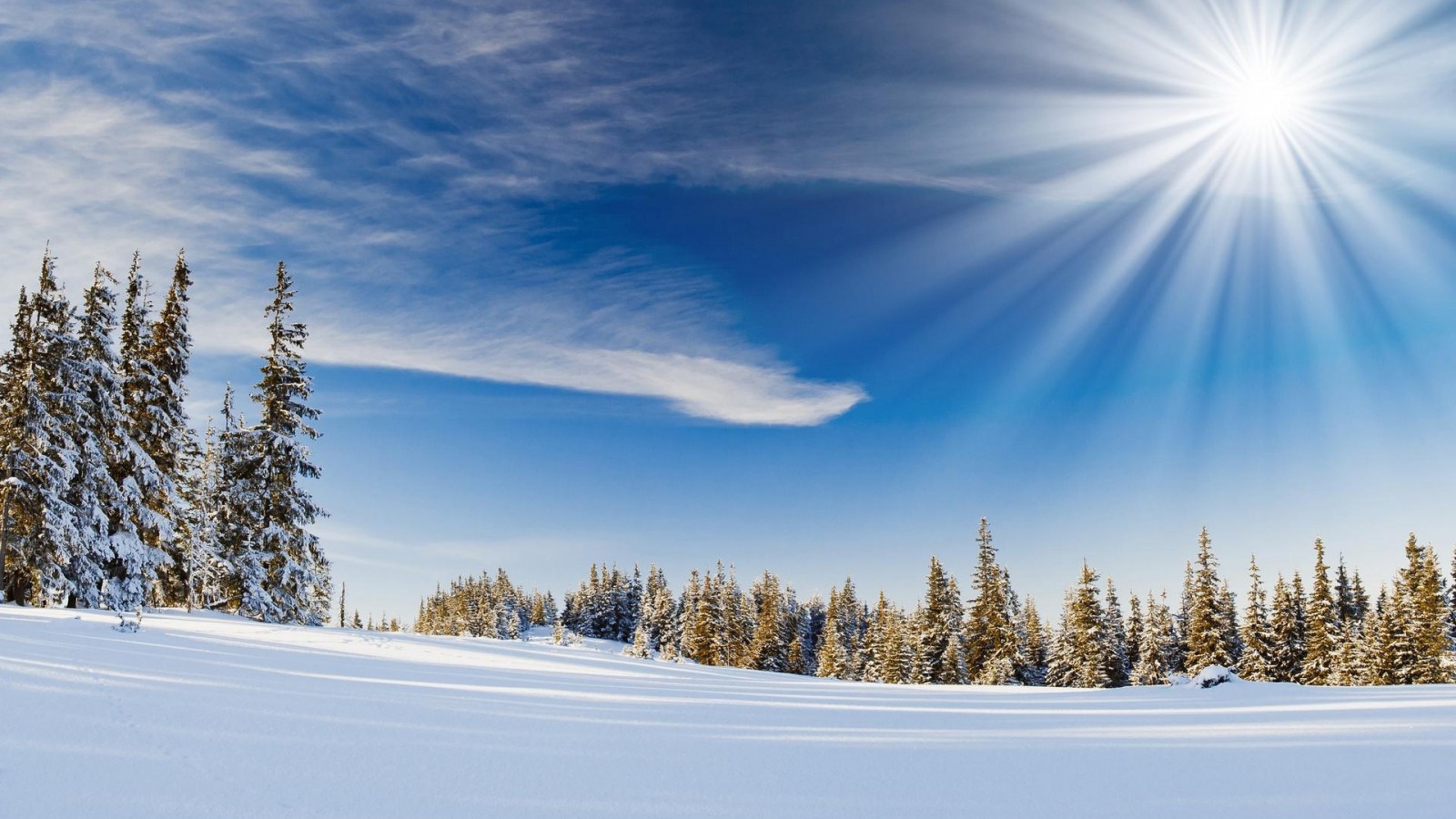 Природа, пейзаж, деревья, лес, зимний снег, солнечный свет, лучи, фото высокого качества - 1600x900