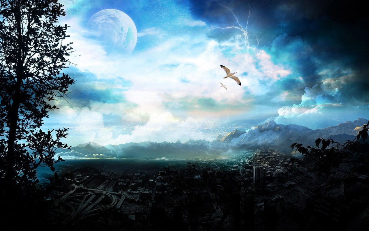 Птица в лунном свете - 1280x800