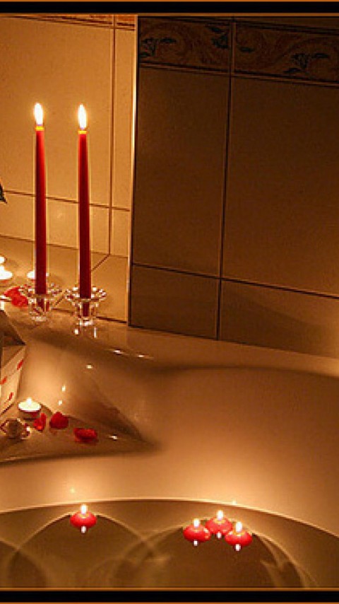 Романтика, свечи, шампанское, праздник, ванна, любовь, обои, картинки - 480x854