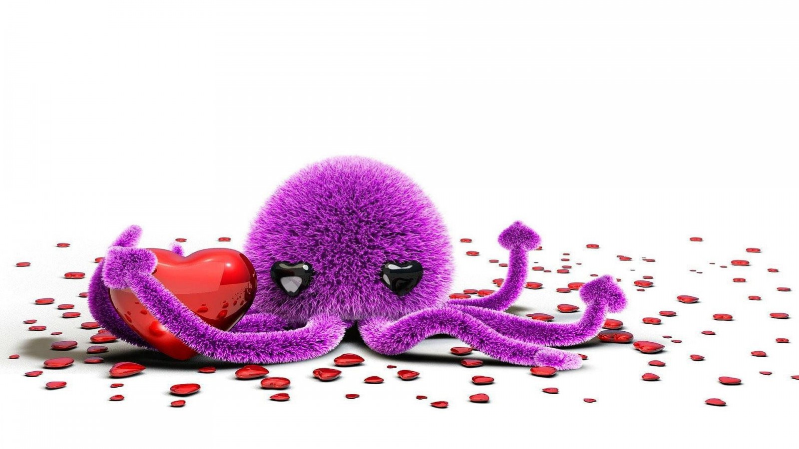 Симпатичная игрушка осьминога и сердца - 1600x900