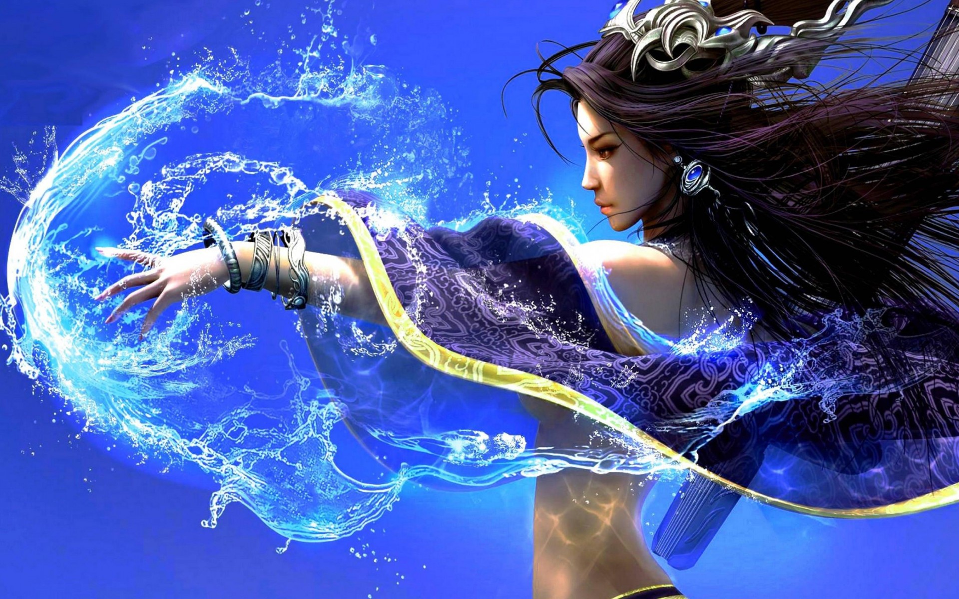 Сказочная фентези девушка колдунья на синем фоне - 1920x1200